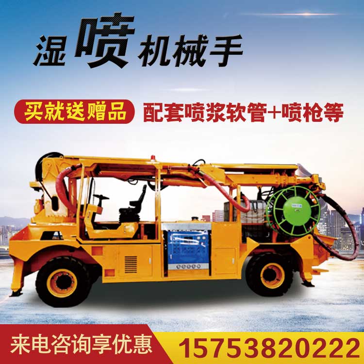 2.機械手噴射范圍大,自由度多,遙控操作靈活,噴射平整度好,回彈少,噴射效率高、施工質(zhì)量好,結構穩定,性能可靠,動(dòng)作平穩。