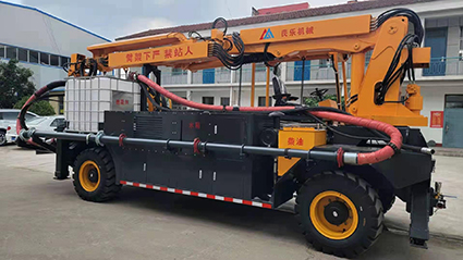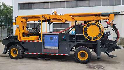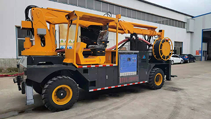 混凝土濕噴臺車(chē)包括液壓噴射機械手、噴射機(泵)、外加劑及其添加設備和電纜卷盤(pán)、空壓機等,都安裝在同一機械底盤(pán)上,是一臺集混凝土泵送、外加劑添加、混凝土噴射等多項作業(yè)于一體的組合設備?;炷翝駠娕_車(chē)的各組成系統在整體設計上統一考慮了其布局的合理性,做到了易于維修,并具有易于清洗的特點(diǎn)。